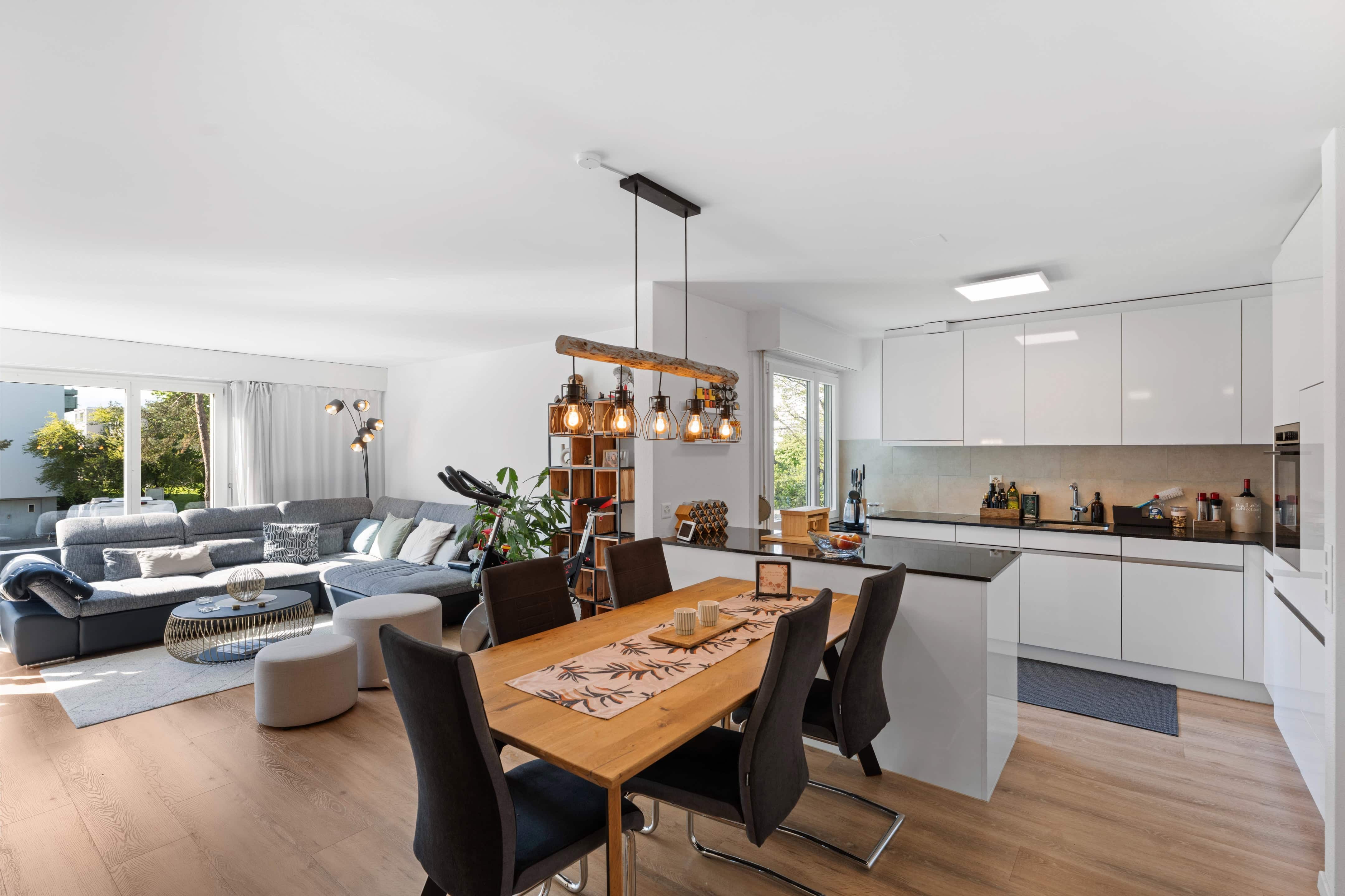 Located in an elevated position in Hünenberg (Canton Zug), this charming 3.5-room apartment awaits you in an apartment building with only 9 units. The south-facing apartment on the first floor uniquely combines comfort and elegance. With a living area of 85 square meters, it is fully furnished and ready to welcome you into a cozy and stylish environment.